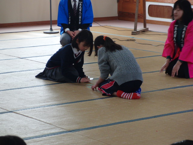 3/12(土)玉名蓮華院誕生寺奥の院で、五色百人一首熊本県大会が行われ、横島小学校から荒尾玉名大会を勝ち上がった4名が参加しました。そのうち3名が1次リーグを勝ち上がり、ベスト4まで進出しました。1名は決勝まで進出し、惜しくも惜しくも最後の1枚で準優勝でした。ぴーんと張り詰めた緊張感の中、どの子どももよくがんばりました。