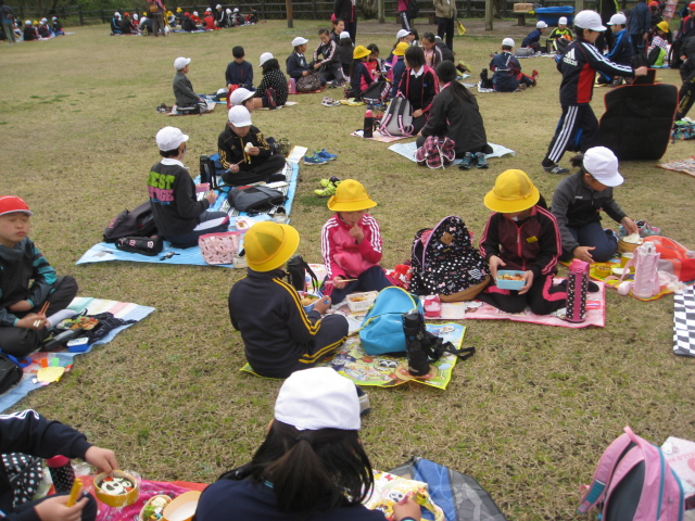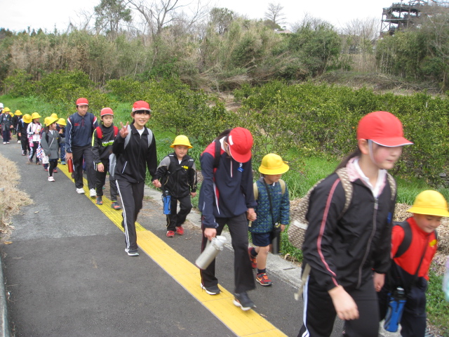 3/10(木)送別遠足がありました。昨日の雨でやや地面が緩かったので、体育館で送別行事(6年生を送る会)をしてから、展望公園に行って、お弁当を食べたり遊んだりしました。