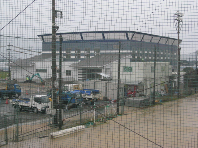 横島町体育館が、完成間近になってきました。駐車場はきれいに舗装されるそうです。