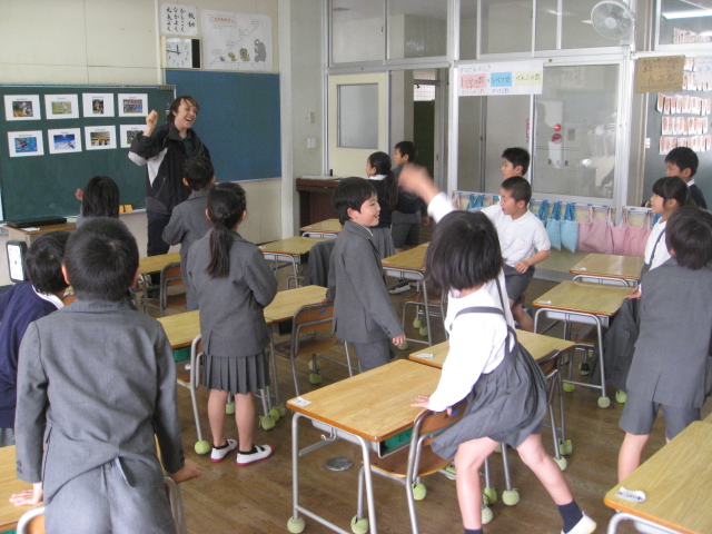 3/8(火)今年度、最後のALTの授業がありました。2年生では、英語でのスポーツの言い方をジャスチャー付きで練習していました。