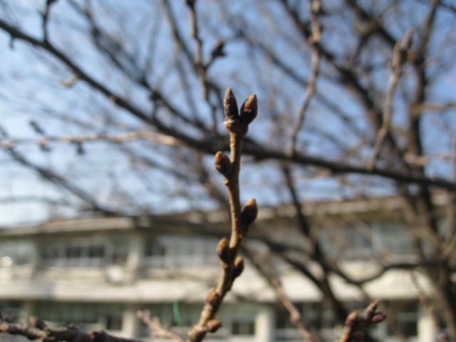 サクラの芽(つぼみ)が、膨らんできました。開花予想日は、3月25日だそうです。卒業式には間に合わないようです。また、入学式の頃は散っていそうです。