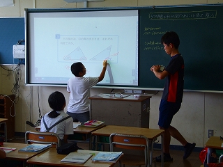7/19(火) 5年1組の算数の授業「三角形の内角の和」の学習のようすです。