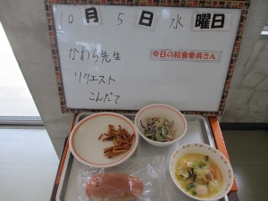 8~10月の給食 投稿日時 : 2016/11/01 学校サイト管理者 10月こんだて.pdf10月26日水曜日10月18日火曜日10月13日木曜日10月11日火曜日10月6日木曜日10月3日月曜日8・9月こんだて.pdf9月28日水曜日9月8日(木)