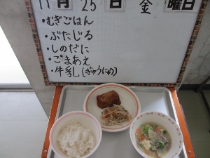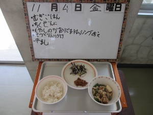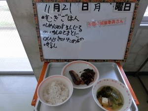 11/17(木) 今日は、こども110番・スクールガードの方をたくさんお迎えし、給食にご招待しました。いつもお世話になりありがとうございます。