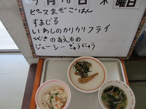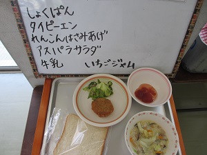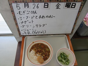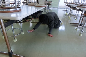 4/21(金) 今年度からランチルームの掃除の仕方が変わりました。掃除の時間に各クラスから2名ずつ自分のクラスの場所を中心に掃除をしています。一生懸命きれいにしてくれていますよ。