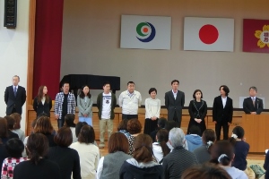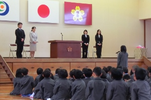 4/10(月) 平成29年度がスタートしました。新しく4名の先生をお迎えし、就任式が行われました。そのあと、前期の始業式がありました。校長先生から「めあてに向かってがんばりましょう」「だれとでも仲良くしましょう」「元気よくあいさつをしましょう」と、お話がありました。