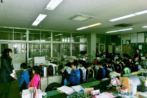 2時間目は、学校内を探検しました。きちんと挨拶をして職員室にも入りました。