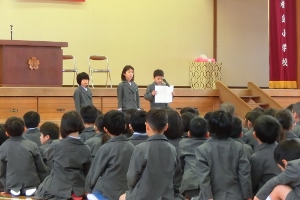 また、3名の児童の代表が、新しい学年でがんばることを発表しました。