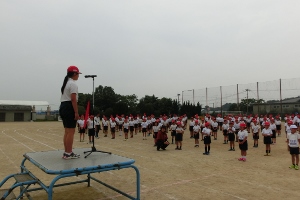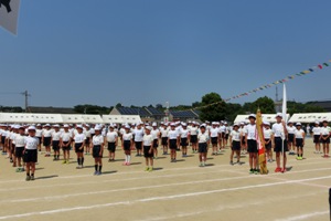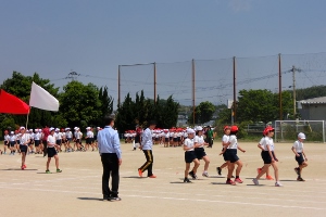 5/24(水) 今日は2・3・4時間目を使って、運動会の総練習でした。始めは雨が降っていたため、体育館で応援合戦の練習を通してしました。その後、雨がやんだので、開会式の練習以外を通して行うことができました。高学年を中心に、係りの子どもたちががんばっていました。