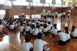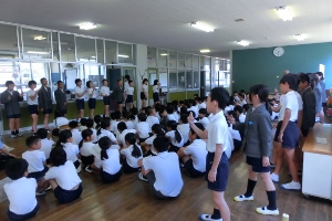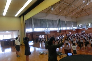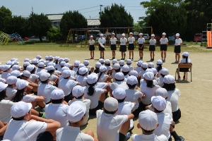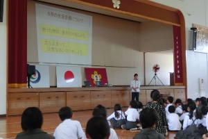 5/8(月) 月初めの集会がありました。今年度から月に一回、5時間目に集会をすることになっています。今日は、校長先生のお話と、生活指導の先生からのお話がありました。また、体育委員会の発表があり、運動会に向けてラジオ体操の練習をしました。最後に、運動会の歌「ゴーゴーゴー」をみんなで歌いました。