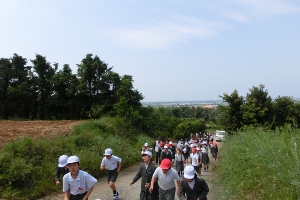 5/11(木) 津波避難訓練がありました。横島は海に面しているので、地震が起きたときは津波が来る可能性があります。校舎の三階では津波に襲われる危険があるので、外平山に避難するようになっています。2時間目に地震や津波に関する学習をしたあと、実際に外平山に避難しました。ほとんどの人が真剣に取組むことができていました。