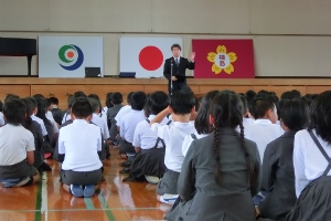 4/4(火) 今年度も玉名市商工会女性部の方から、新一年生にマイバッグをいただきました。毎年手作りのかわいらしいバッグをいただいています。横島の子どもたちは、いただいたバッグを6年間使っています。今年も大切に使わせていただきます。ありがとうございました。