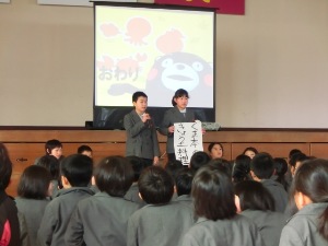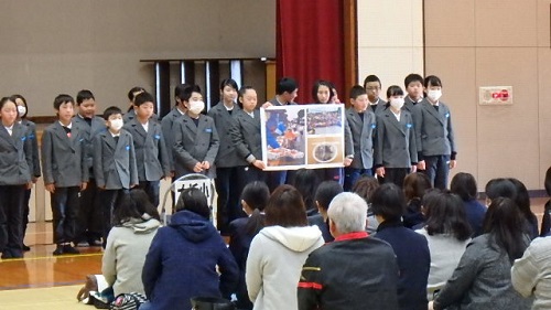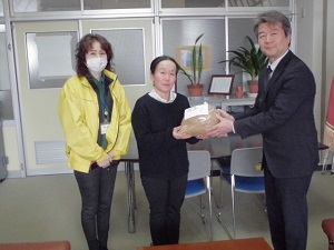 1/18(木) 玉名農業協同組合女性部の方から、味噌をいただきました。食農教育の一環と地産地消の普及として、地元産大豆を使用してみそづくりをおこなっているそうです。給食でおいしくいただきます。ありがとうございました。