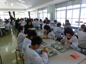 1/24(水) ありがとう給食がありました。給食の調理員さんと栄養士の先生と一緒に給食を食べ、感謝の気持ちを伝えました。横島小の給食は自校式なので、作りたての温かい給食を食べることができ、とても幸せです。