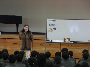 1/11(木) 4年生以上の玉名学の一つに「茶道」があります。今日は茶道の歴史について学びました。