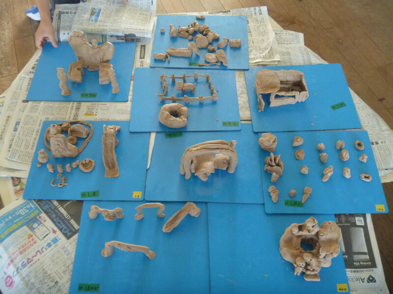 糸を使って粘土を切ったり、へらを使って粘土をくりぬいたりと、みんな集中して作品を完成させていました。