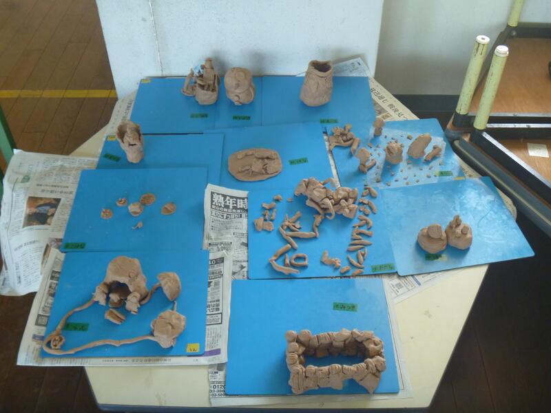 図工「切って ほって 組み立てて」の学習で、粘土を使って作品作りをしました。