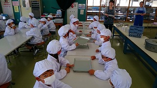 上級生よりも早めにランチルームにやってきて、担任の先生からしっかり説明をしてもらいました。