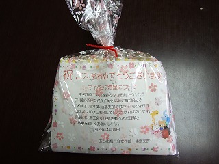 今年も、玉名市商工会女性部「横島支部」から、新入生47名に「マイバッグ」をいただきました。
