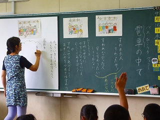 | 6年1組教室:これまでの学びの歩み | 2年2組:音読発表会があっていました。 |