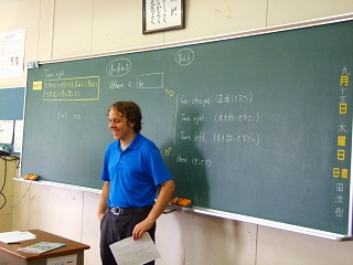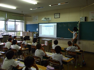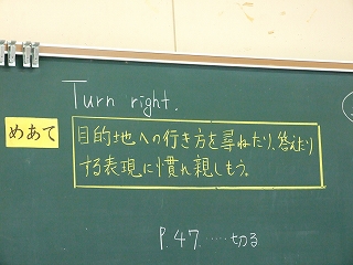 | 2年2組の道徳の授業風景 | 6年2組は、外国語活動 | めあては、「目的地への行き方を尋ねたり答えたりする表現に親しもう。」です。 |