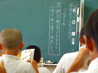 | 3年2組 漢字の学習中!! | 4年1組 ごんぎつねのラストシーンをもとに、その後の話を書く学習。 | 4年2組理科。星座早見盤の使い方の学習中!! |