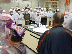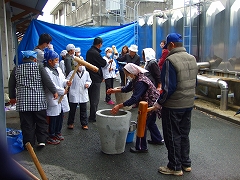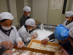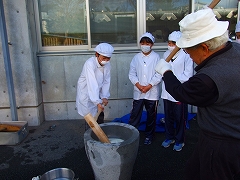 5年生は、学習で収穫した餅米を使って、餅つきをしました。