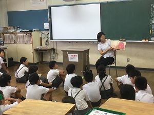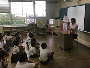 朝の活動で行っています。子どもたちも、わくわくしながら、集中して聞いていました。