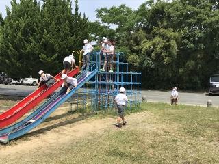 6月23日(火) 教室には、エアコンが入り涼しいのですが、子供達は、外で元気よく遊んでいます。