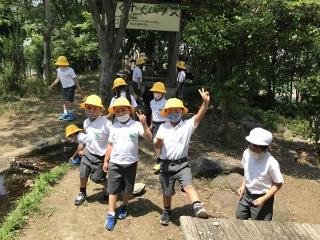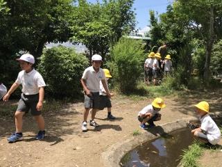 6月8日(月) 日差しが強く熱いくらいの天気でしたが、子供達は元気よく外で遊んでいます。学びの森では、1年生がもエビ?を探して遊んでいました。最後の写真は、チャイムが鳴ったので、みんな一斉に引き上げていく様子です。