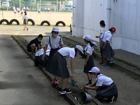 6月19日(金) 5・6時間目は、5・6年生がプール掃除をしました。みんな私語をしないように注意しながら頑張っていました。