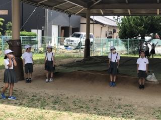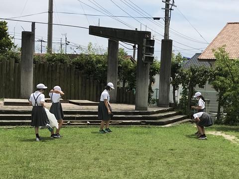 6月26日(金) 昼休み6年生のプロジェクトで、ゴミ拾いをしている子供達がいました。お願いしたら、グリーンステージの石も拾ってくれました。これで、芝刈りがしやすくなります。ありがとう。