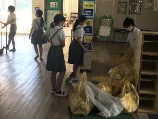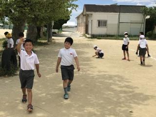 6月10日(水) 昼休みに清掃・美化委員の子供達が、ごみ集めをしていました。いつもありがとう。あなたたちのおかげで学校がきれいに保てています。