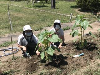 6月10日(水) 昼休みひまわりの周りの雑草を取っていたら、5年生の女の子が2人やってきて、「私たちに何かできることがありますか」と尋ねてきました。そして一緒に草取りをしてくれました。とってもうれしくて温かい気持ちになりました。本当に共感力と行動力の高い子供達です。