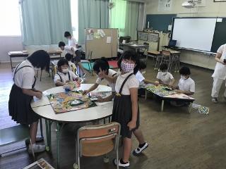 6月18日(木) 今日は一日雨だったので、昼休みは教室で過ごす子供達が多かったです。特に低学年は、担任の先生も一緒に教室でお絵かきや粘土遊び、おはじきなどをして落ち着いて過ごしていました。