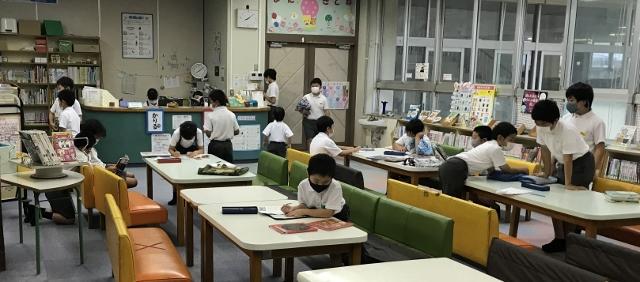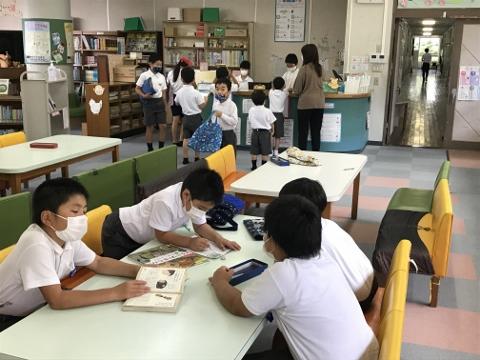 6月25日(木) 朝の図書室の様子です。入れ替わり立ち替わり多くの子供達が本を借りに来ていました。