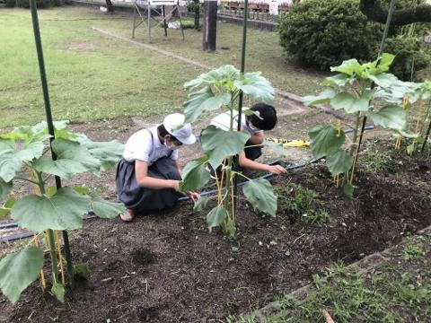 6月23日(火) 朝、栽培委員が、天気の良い日は毎日、学校園やプランターの花に水掛けをしてくれています。いつもありがとう。