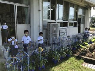 6月10日(水) 先週の土曜日、民生児童委員の皆様によりゆとりーむの花壇にひまわりなどの花が植えられました。苗は、本校から提供させていただきました。生長を時々お伝えしたいと思います。
