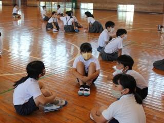 6月25日(木) 3日前のことになりますが、5年生が、米作りの年間計画を話しあいました。密にならないように体育館で行いました。昨年度の計画を少し変更し工夫が見られるようです。内容は、今のところひみつです。どんな活動になっていくかとても楽しみです。