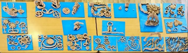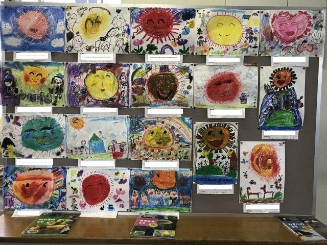 6月25日(木) 廊下に作品が展示してありました。粘土と絵の作品です。