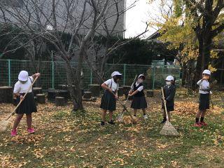 11月27日(金)朝、登校指導の後、児童玄関前に散らばっていた落ち葉を集めていると2年生の女の子が、手伝いますと声をかけてくれました。その後、グリーンステージの落ち葉集めを一緒にしてくれました。
