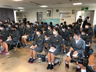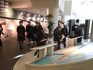 11月17日(火)8時45分に学校を出発しました。バスでは、感染予防のため一つ一つの席がビニールシートで区切られていました。マスクに消毒も確実に行っています。感染が早く収まってくれるのを願っています。