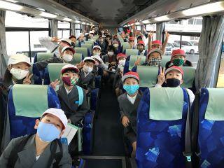11月17日(火)8時45分に学校を出発しました。バスでは、感染予防のため一つ一つの席がビニールシートで区切られていました。マスクに消毒も確実に行っています。感染が早く収まってくれるのを願っています。