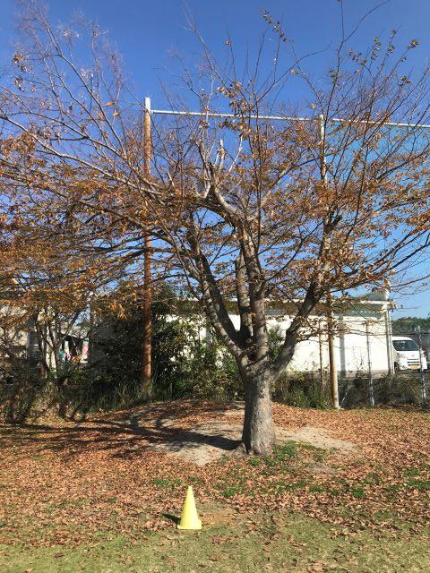 11月21日(土) 午前中に地域の方からの連絡で学校の樹木が折れているのが分かりました。昨日運動場を見回ったときには、気づきませんでした。おそらく一昨日の雷の影響ではないかと思います。ひとまずすぐ落下するような状況ではなく、ちょっと素人の私ではどうしようもないので、対処法を検討して対応します。