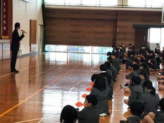 11月4日(水)5校時、11月集会を行いました。まず、私から運動会の頑張りを伝え、今後もあいさつと止まってくださった車への礼を継続していこうという話をしました。その後、生徒指導担当からコロナ感染症予防についてやあいさつについて、11月の生活目標などについて話がありました。そして、図書委員の取組についての発表と職員2名による鬼滅の刃の挿入歌「紅蓮華」のピアノの連弾がありました。子供達は大喜びでした。多くの行事が中止になる中で、子ども達に良い音楽で楽しませたいという職員からのアイディアで実現しました。大変ありがとうございました。