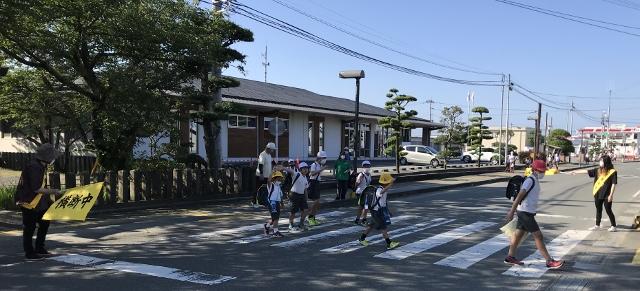 6月22日(月) 朝の登校指導の様子です。いつものように保護者地域の皆様のご協力で子供達が安全に登校できています。各地区でも多くの方の協力を頂いています。大変ありがとうございます。