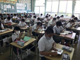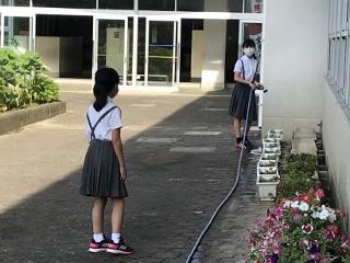 6月24日(水) 朝、栽培委員の子供が花に水掛けをしているところと自習で落ち着いた雰囲気で読書をしているクラスです。