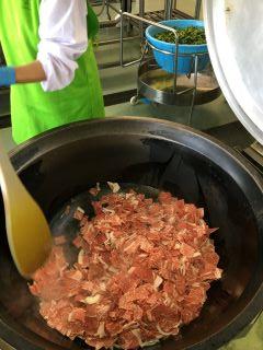 今日のメニューは、①むぎごはん ②すき焼き ③酢みそあえ ④納豆 ⑤牛乳です。今日は、健さん牛肉等提供推進事業で、赤牛の牛肉を使ったメニューでした。いつもおいしい給食なのですが、今日は一段とおいしかったです。現在は、新型コロナ感染症予防で、距離を取って一方向を向いて、黙って食べています。おいしいお肉を使った料理で少し幸せな気分になりました。