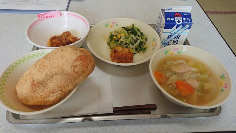 鶏肉のハーブ焼きも美味しかったですが、私は、かみかみ和えがうれしかったです。顎力(噛む力)をつけるために裂きイカと切り干し大根を使っていただき、子どもたちが食べやすいように甘みを付けてありました。豆腐汁は、優しさが温かく身体にしみわたるおいしさでした。今日もごちそうさまでした。