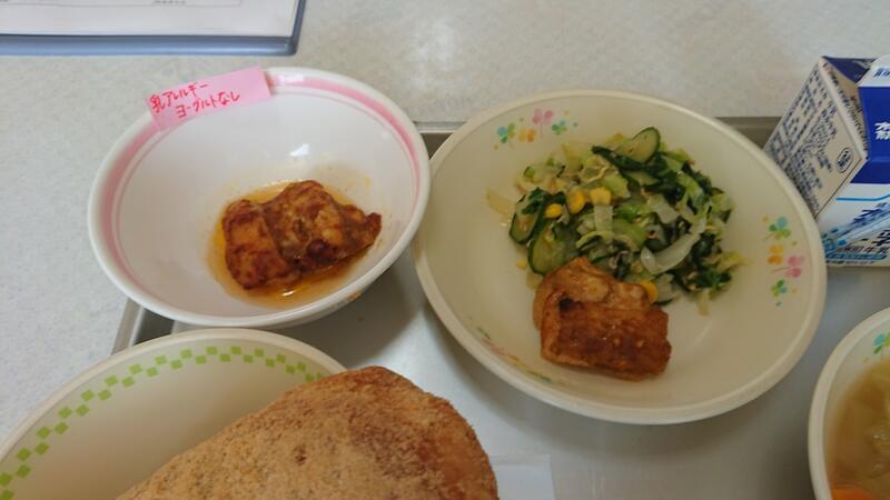タンドリーチキンは、カレー味を付けてあり、乳アレルギー対応でヨーグルトを使わないのと使うので焼き上げていただきました。今日もありがとうございました。